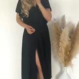 Długa czarna sukienka z rozporkiem, wyszczuplająca, 100% wiskozy