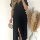 Maxi czarna sukienka z rozporkiem, wyszczuplająca, 4XL 5XL