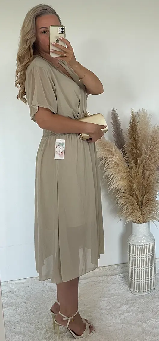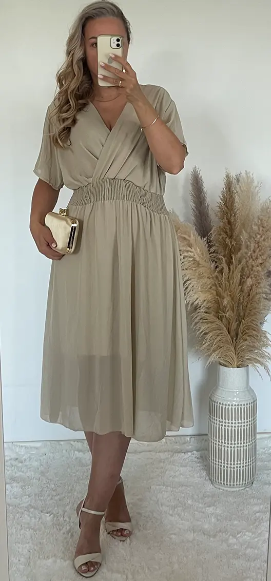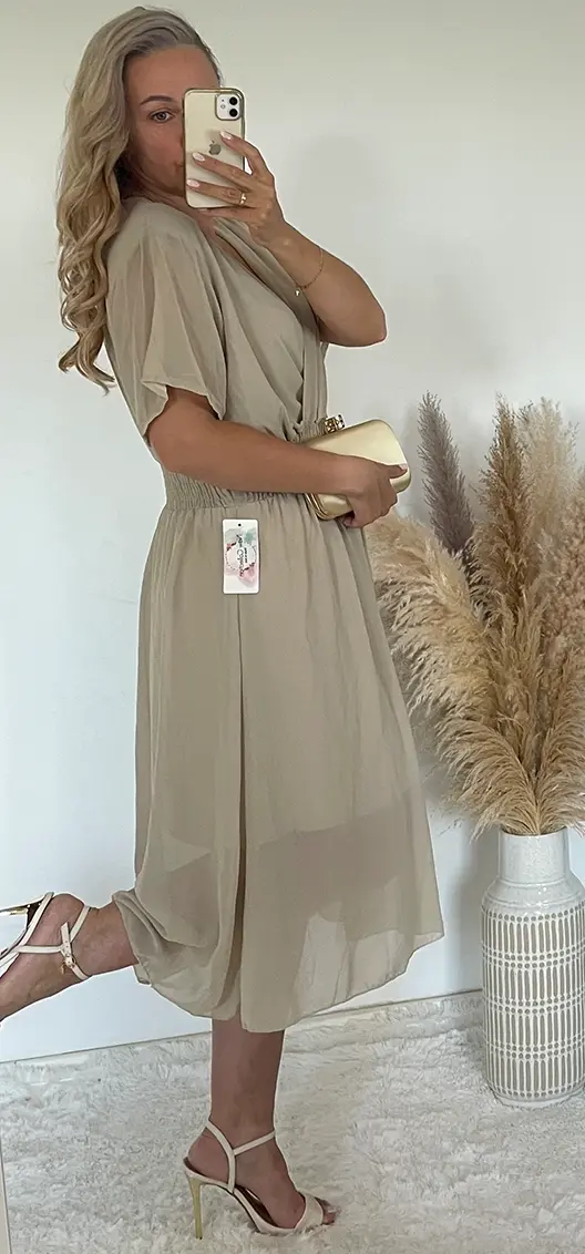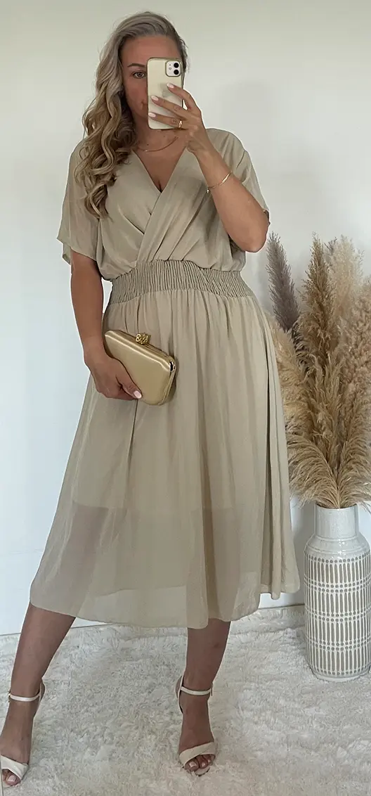 Sukienka beżowa szyfonowa z podszewką w 100% z wiskozy