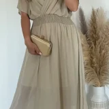 Sukienka beżowa szyfonowa z podszewką 2XL 3XL